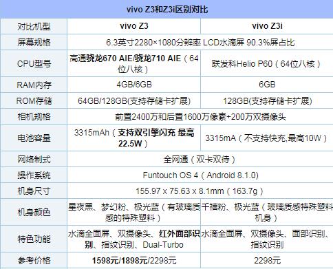 从简单的规格对比,就可以感受到,vivo Z3相比Z3i显得更有诚意。