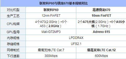 联发科P60相比骁龙670性能都存在较为明显的差距,更别提跑分在17万+,性能更强的骁龙710了。