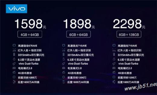 vivoZ3骁龙670处理器的4+64GB版本售价为1598元,而应用骁龙710处理器的6+64GB、6+128GB版本售价分别为1898元、2298元!