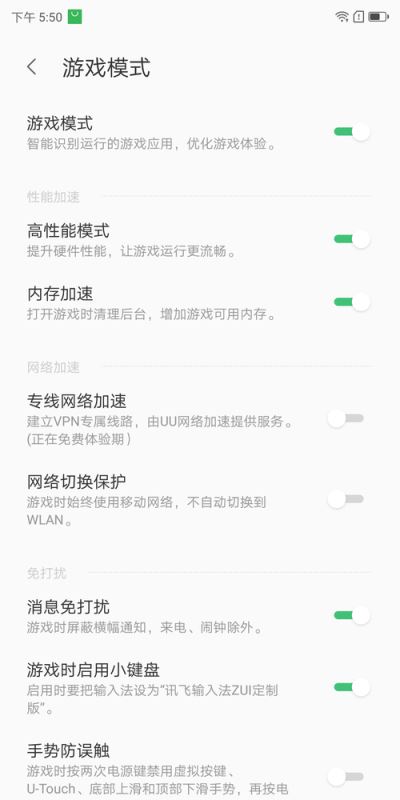由于主打影音娱乐,联想K5 Pro还增添了游戏模式,开启之后,可以让手机保持在高性能模式下,并且在开启游戏之后自动清理后台,增加了游戏的可用内存。用户还可以根据自己的需要,开启消息免打扰以及游戏小键盘和手势防误触,减少游戏时收到不必要的打扰。