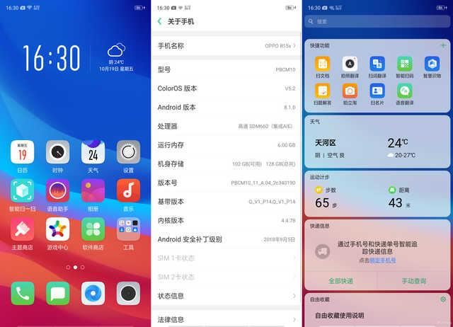 系统方面,OPPO R15X搭载了基于安卓8.1定制的ColorOS 5.2系统,相较于以往的版本,ColorOS 5.2在多个方面提升了用户的使用体验,亮点主要是界面简约清新,无广告,实用的一些功能基本都有,虽然知名度没有MIUI/Flyme高,但口碑还是可以的。