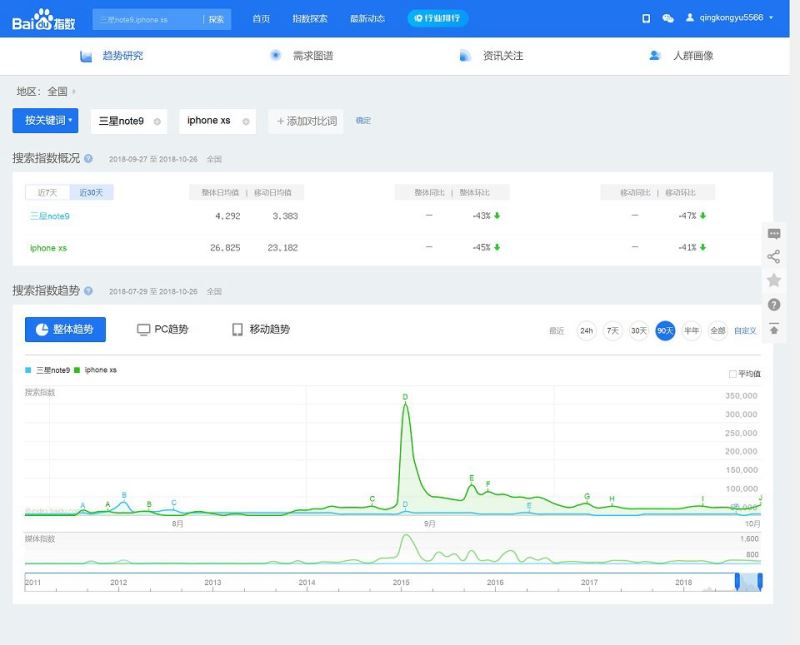 总的来说,三星Note9和iPhone XS都属于目前非常优秀的大牌旗舰机,大家可以根据自己的预算和喜好进行选择。从整个大环境或者销量(搜索指数)上去看,国人对XS的兴趣,要远比Note9高。当然,这里不是说,三星Note9不够优秀,只不过说它愈发小众或者被边缘化了,对于高端星粉来说,依然是有很强吸引力的。