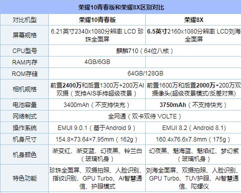 以上就是小编为大家带来的荣耀10青春版和荣耀8X哪款更值得购买?荣耀10青春版和荣耀8X区别对比,希望能对您有所帮助,小伙伴们有空可以来脚本之家网站,我们的网站上还有许多其它的资料等着小伙伴来挖掘哦!