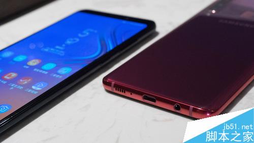 Galaxy A9s比较良心的保留了耳机孔,采用公历Type-C口,扬声器也位于底部。