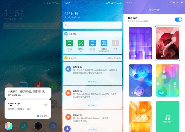 此外,为了兼顾滑盖的设计,小米MIX3还针对滑盖屏做出了一些优化,并加入了一些新功能,比如如滑盖快捷操作、游戏工具栏等。另外,滑盖时还能够发出十分酷炫的声音,并且有很多种供你挑选。