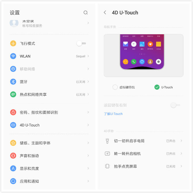 特色功能:全面屏、三摄拍照、Turbo游戏加速、4D U-Touch手势