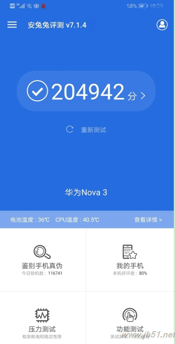 Nova3和nova4搭载的是同样的麒麟970处理器,支持GPU Trubo技术, 6GB运行内存+128GB机身存储,运行最新的EMUI 8 2系统,电池容量为3750mAh,支持快充,提供有浅艾蓝、蓝楹紫、亮黑色和樱草金四种配色,机身底部设有USB Type-C 2.0接口,保留3.5mm耳机插孔。如下图为华为Nova3跑分成绩:
