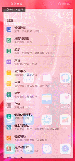 同时,在EMUI9.0上,华为加入了全面屏手势操作,从左右边框向里滑返回上一级,底部上滑返回桌面,上滑停顿多任务,操作很顺手。