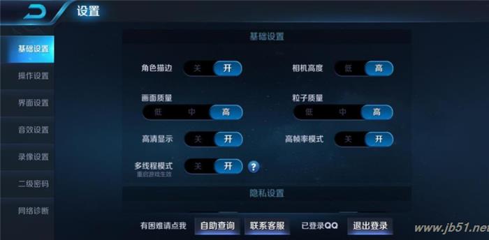 小编打开《王者荣耀》,开启角色描边、高帧率、多线程、最高画面质量、高粒子质量等全特效。