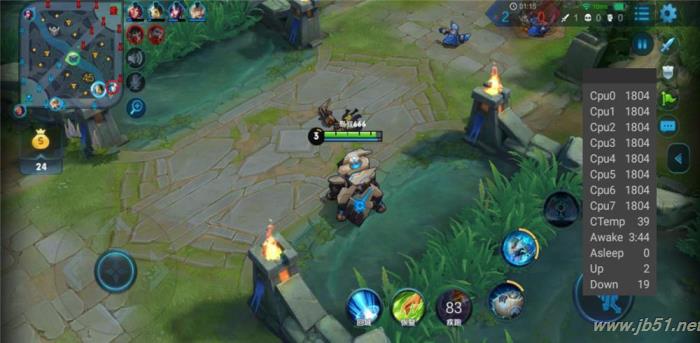 如上图所示,使用华为畅享9玩《王者荣耀》时,其八核心保持积极的满频运行,来提供较为流畅的游戏画面表现,游戏过程当中没有发生有碍游戏体验的状况,较为流畅。