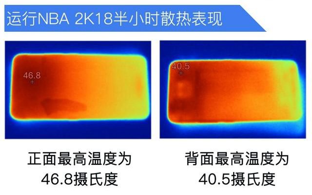 散热方面,vivo NEX双屏版由于双面都是屏幕,机身厚度也只有8mm,加之并没有液冷散热技术,因此在散热方面就显得一般般,运行一些比较大的游戏,时间一长容易出现机身发热的现象,比如NBA 2K18游戏下,最高温度超过46度,而一些主打游戏,配备液冷散热的游戏手机普遍可以控制在40度左右。