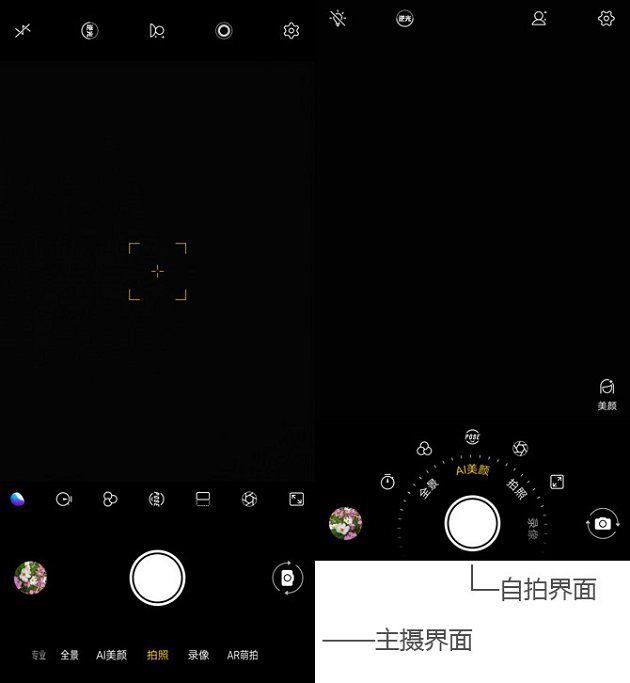 vivo NEX双屏版三摄像头不分前后,自拍与拍照都是借助后置1200万双核像素主摄(OIS)+200万像素夜视摄像头+TOF 3D立体摄像头来完成,主传感器为索尼IMX363,传感器规格不算高,不过支持F1.8光圈和四轴光学防抖。三摄自拍,体验无疑是不错的,以下是该机相机界面。