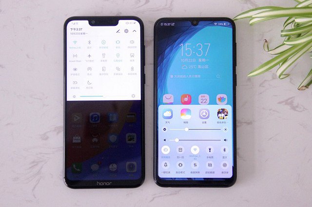 vivo Z3正面采用了水滴全面屏,额头比较窄,结合COF封装窄下巴设计,屏占比达到90.3%。而荣耀Play则为宽刘海设计,并且下巴较宽,屏占比不足85%,从正面视觉效果上看,Z3无疑更耐看一些。