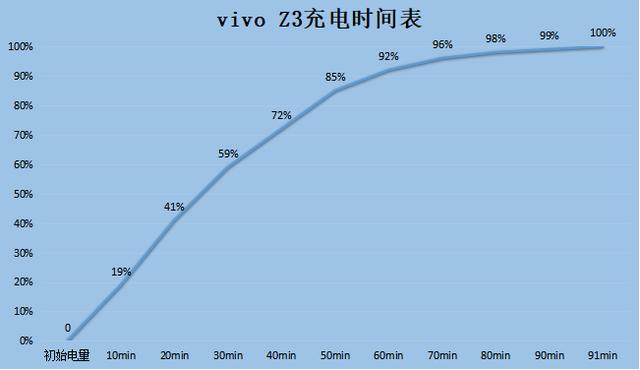 充电时间方面,vivo Z3电量从0%到100%充满大约需要91分钟(一个半小时),而荣耀Play则需要117分钟。显然,Play由于电池容量更大,加之快充规格低一些,充电时间明显要长一些。