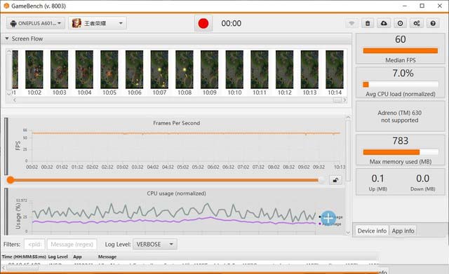 首先我们测试了一加6T玩王者荣耀的帧率情况,在测试之前,我其实对测试结果已经有所预料了,即使是最高画质的王者荣耀,对一加6T来说,依旧无法造成任何压力,测试的结果也同样证明了这个假设。