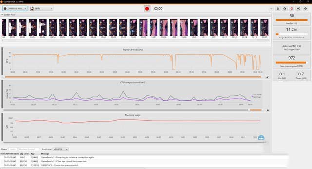 我们可以看到,在游戏前期,帧率一直非常稳定。其中帧率下降的位置都是我们切换关卡导致的。但是在游戏的后期大场景多角色的情况下帧率依然有一定程度的下降。(比如知名的掉帧炮)