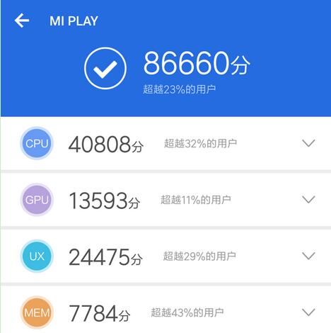 小结:从上面小米6X和小米Play跑分对比可以看到,小米6X比小米Play跑分高了4万多分,实际应用方面还是有一些差距的,因而小米6X的性能要明显好于小米Play
