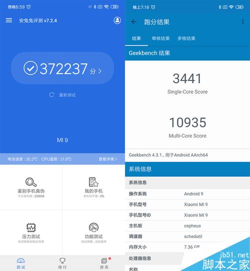 官方宣传小米9跑分达到38万+,小编测试结果为372237分,基本维持在37万左右,跑到38万+的次数比较少。