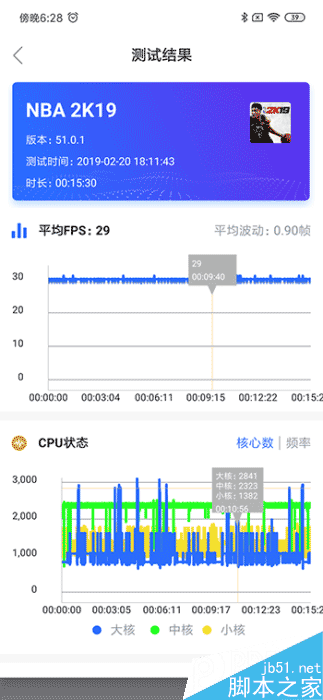 比较出乎意料的是《NBA 2K19》,表现比《刺激战场》还要好,全程基本没有帧率的抖动,非常稳。所以,性能上妥妥的目前安卓最强。