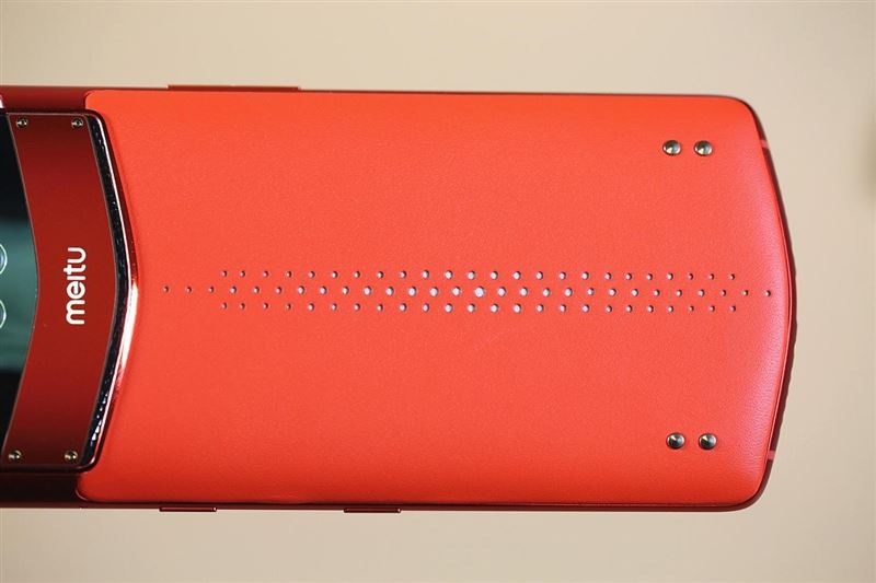 值得注意的是,在美图V7的机身后背尾部还于两侧各镶2颗18K镀金铆钉,确实是丝毫不吝啬对于边角细节的低调打磨。