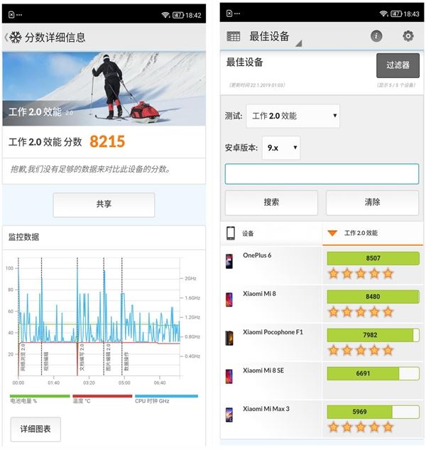 需要注意的是PCMark的跑分偏向能耗比,也就是功耗与性能更均衡的手机得分越高。