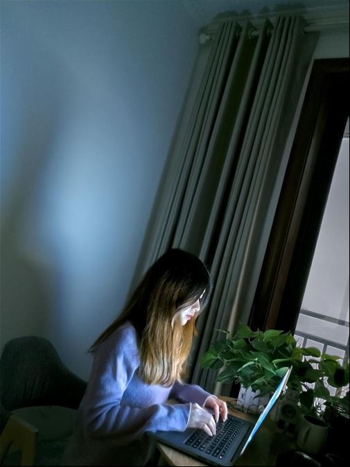 笔者在昏暗的办公室当中关掉所有灯,仅留下一台电脑作为光源。可以看到无论是否打开超级夜景模式,模特小姐姐的脸部细节依然十分清晰。
