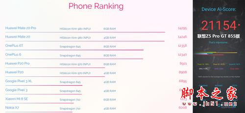 此外骁龙855还着重加强了AI性能,虽然没有像其他SoC一样采用专门的AI核心,但在加强CPU、GPU、DSP Hexagon 690的同时,也引入了新的Tensor Accelerator张量加速器,共同组成其第四代AI引擎。我们使用AI Benchmark进行测试,Z5 Pro GT最终得分21154,从官网排行榜来看,高于如今以14295分霸占榜首的Mate 20 Pro。