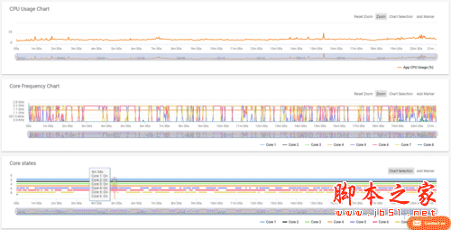 对比CPU频率则可以发现,超大核基本全程处于关闭状态,三颗大核也是轮流关闭,四颗小核心长时在线,虽然波动明显,但因为还是保证了帧率的优秀表现,所以我们暂时难以说明是联想调度刻意所为,还是因为挑战难度太小超大核心根本不用发力。
