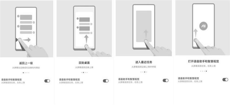 (4)从屏幕底部左侧/右侧上滑可分别唤出语音助手和智慧识别。