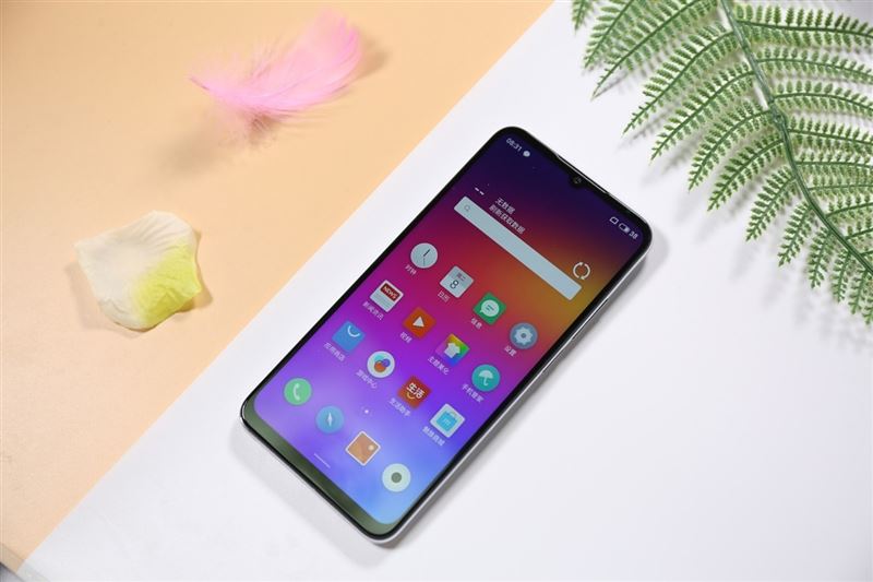 魅族Note 9的正面,采用了流行的水滴屏设计,屏幕大小6.2英寸,3.1mm窄边框,屏占比89.23%,如无意外,其额头“水滴”应该是千元机内最小的“水滴”了。