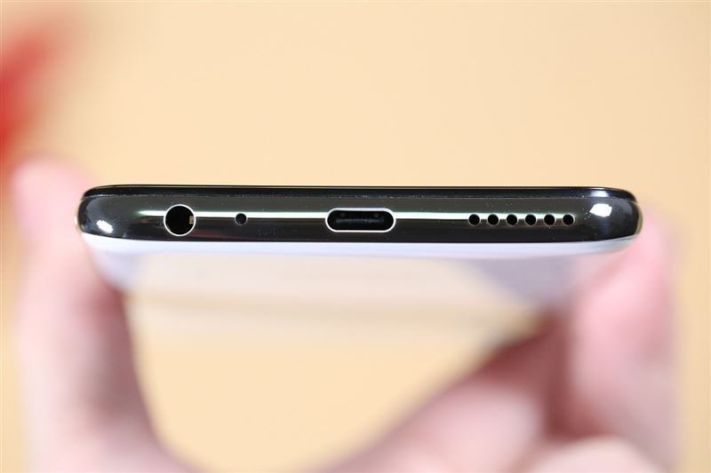 魅族Note 9的底部,分别是3.5mm耳机孔、麦克风、Type-C接口与扬声器。