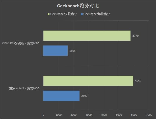 首先是CPU部分呢,从GeekBench跑分来看,骁龙675单核跑分比骁龙660高出785分,提升48%;而多核跑分比骁龙660高出180分,提升3%左右。