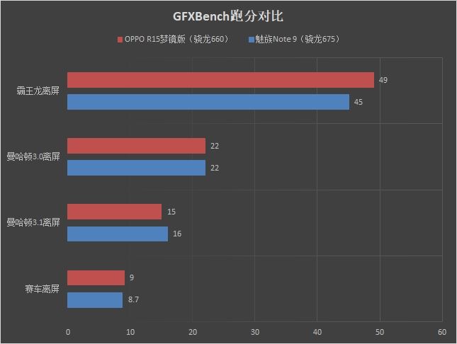 其次是GPU部分,从GFXBench的跑分来看,骁龙675的在GFXBench的4个测试项目上跑分相较于骁龙660相差并不大。