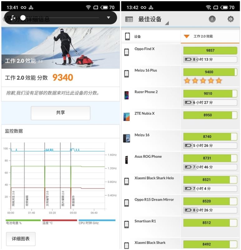 需要注意的是PCMark的跑分偏向能耗比,也就是功耗与性能更均衡的手机得分越高。