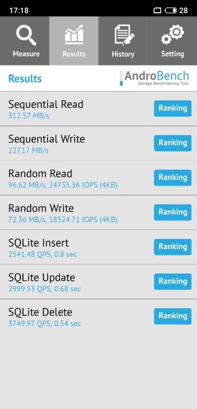 Androbench简介:AndroBench是一个基准测试应用,可以测量Android设备的4K随即存储·存储性能,包括内部或外部存储。