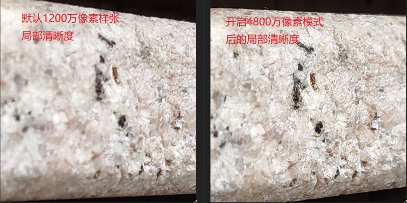 这是局部放大之后,两张样张的清晰度对比,可以很明显地看到右边4800万像素模式下的局部更加清晰,解析力压制不过如此。