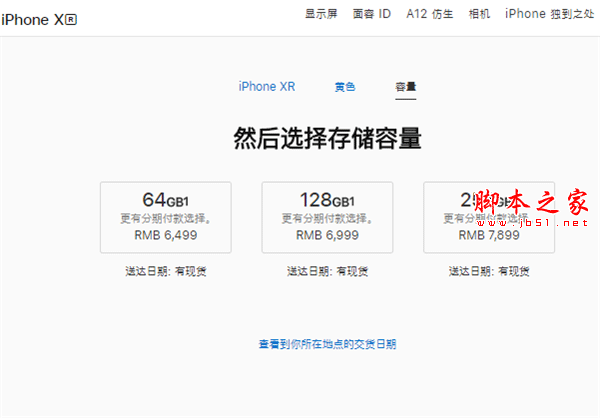 iphonexr的64GB/128GB/256GB售价为6499 元/6999 元/7899 元。