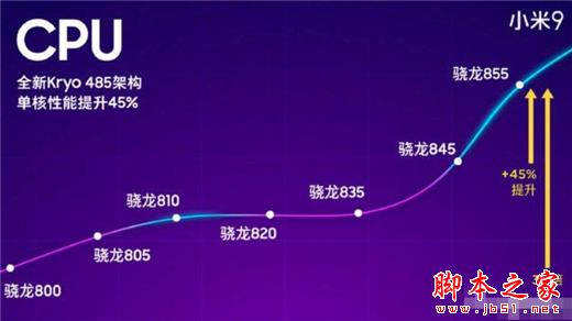 小米9搭载高通骁龙855处理器,骁龙855采用了7nm工艺制程,全新的Kyro 485架构,最高主频2.84GHz,单核性能相比上一代提升了45%,GPU提升20%,是骁龙800系列处理器近年来最大幅度的一次升级。