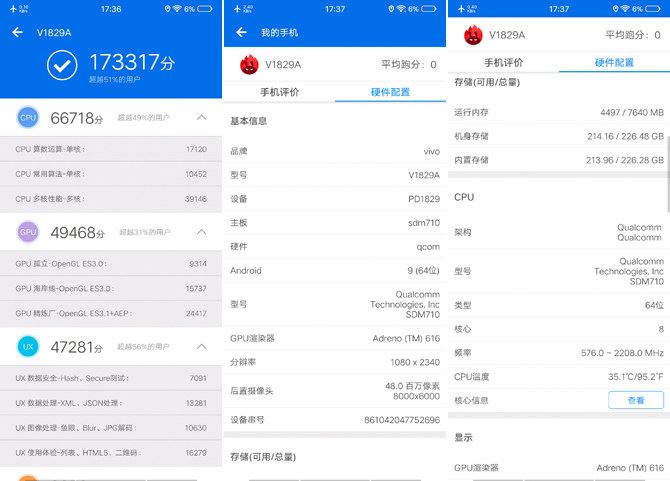 vivo X27搭载了骁龙710AIE八核处理器,标配8GB内存和256GB存储。与iQOO一样,也加入了液冷热管辅助散热,以及Multi-Turbo技术的支持。系统方面,运行基于Android 9.0深度优化的Funtouch OS 9系统。相比前代产品,vivo X27还是进行了比较综合的升级。