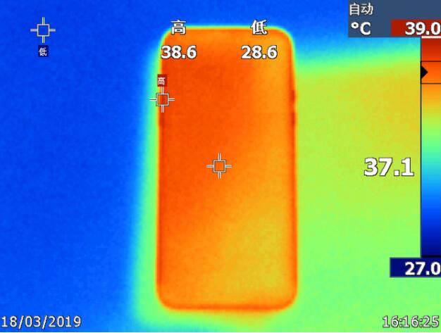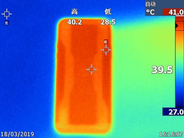 我们也进行了实际测试:在手机连接电脑(测试Gamebench)不间断玩游戏大概30分钟后,黑鲨游戏手机2的发热情况如图:整机温度比较均匀,最高温度也只有40.2℃,表现还是非常理想的。