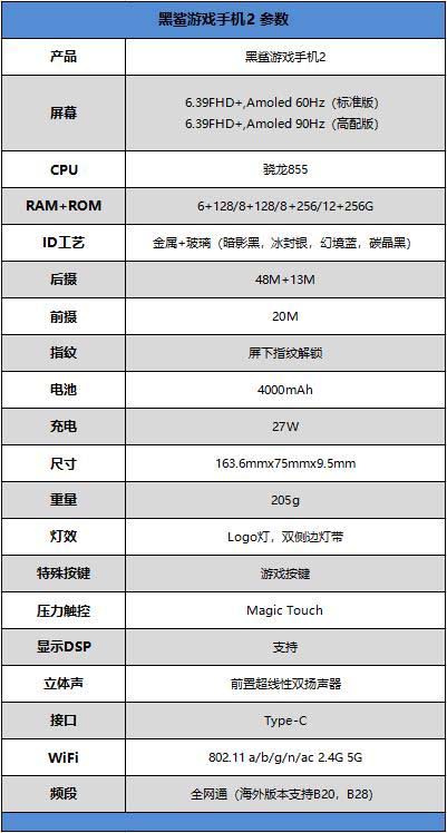 黑鲨游戏手机2所搭载这块屏幕是其有别于普通旗舰手机的重要分水岭之一!黑鲨游戏手机2搭载了6.39FHD+、Amoled 60Hz(标准版)。