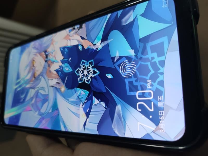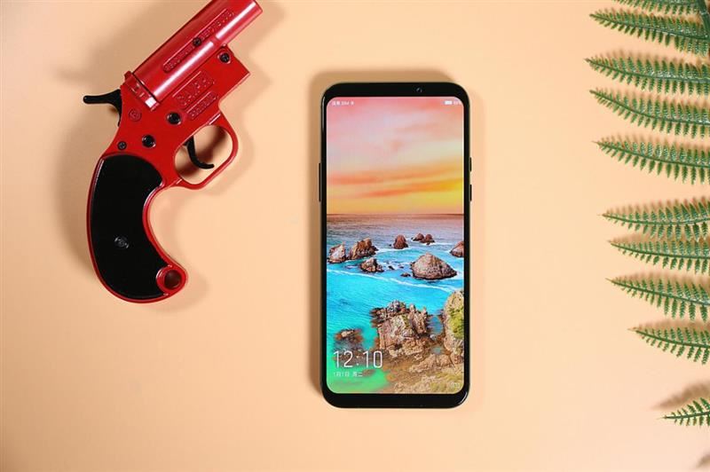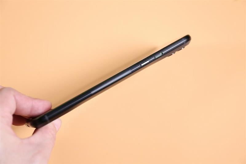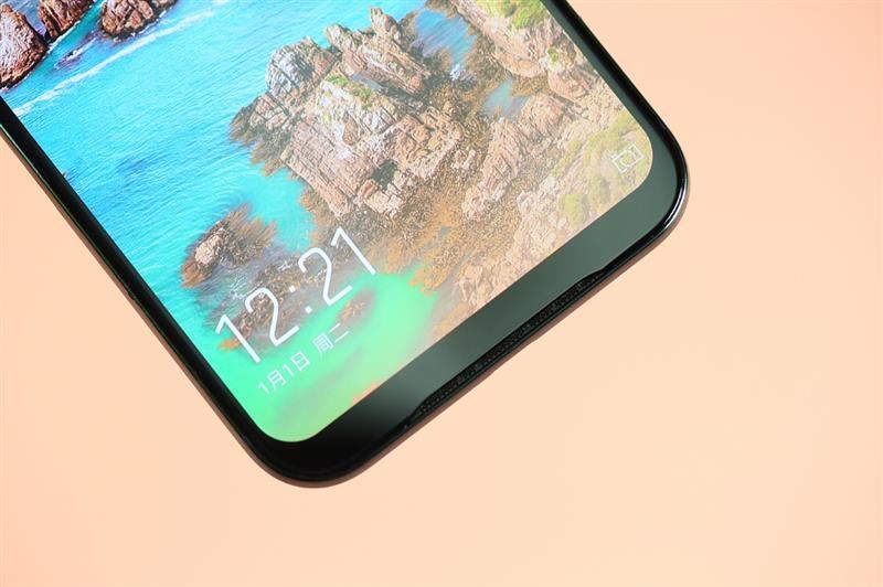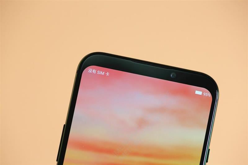 来看额头细节与下巴细节。不难看到是传统18:9手机类型的额头与下巴。其实对于电竞、游戏稍有了解和热衷的朋友都应该知道,上下留出足够的横向握持空间,才能在游戏当中减少误触,以及防止手指遮挡屏幕内容。