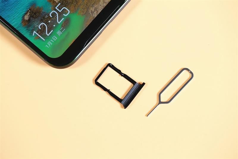 黑鲨游戏手机2的机身底部,非常简洁,有一个居中摆放的Type-C接口和SIM卡槽,依旧没有3.5毫米耳机孔。