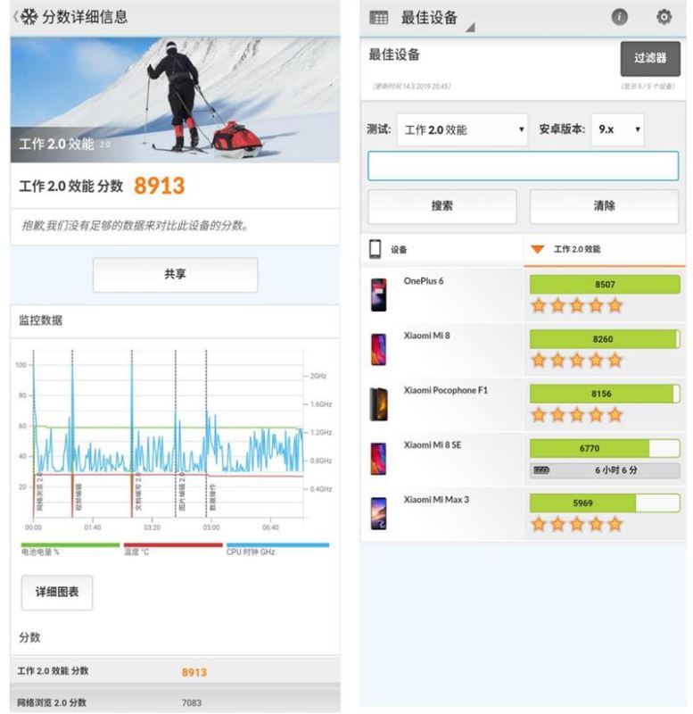 需要注意的是PCMark的跑分偏向能耗比,也就是功耗与性能更均衡的手机得分越高。