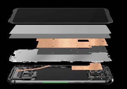它被黑鲨称为“液冷3.0”,采用热板+热管组合散热设计,如示意图所示用上了超大面积的热板、热管,罕见覆盖了全部发热部件,实现分区直触散热、独立热控。让热量机身的金属质地后背、中框快速、均匀排出。