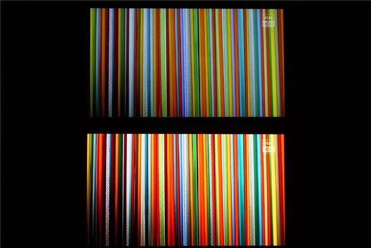 如上图所示,笔者使用索尼HDR 4K从Demo视频作为演示视频,来对比HDR屏幕和非HDR屏幕显示效果上的区别,黑鲨游戏手机2放置在画面下方。