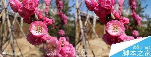 室外自然光样张,两款手机的样张白平衡差异较小,f/1.8的光圈在不开启软件虚化的情况下也能提供不错的虚化表现,Redmi Note 7 Pro画面曝光比荣耀V20稍高一点,所以枝干暗部细节更多,但是花瓣的高光部分出现了小面积过曝。