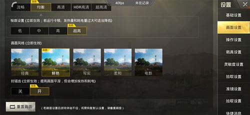 既然骁龙675确实有点特殊,那我们除了理论性能跑分以外,当然还少不了要游戏实测一下,首先说明测试画质,刺激战场开启均衡画质+超高帧数(最高锁帧40fps),抗锯齿开,这里开均衡画质主要是综合考虑到尽量兼顾帧率及画质。