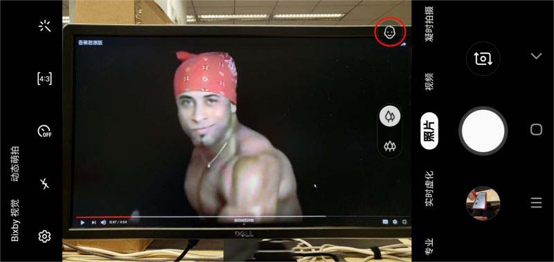 三星的拍照界面,各种重要功能一目了然,具有目前比较流行的场景识别,三星称为场景优化器,会根据被摄物判断不同场景,对应不同优化,该有的功能都有,拍照体验说得上一流。