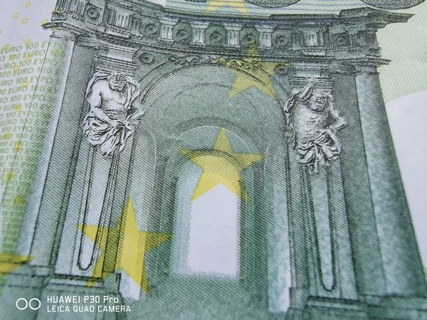 得益于这枚超广角镜头,华为P30 Pro还支持了超级微距功能,通过样张可以看出,钱币上面的“EURO 100”都能看得清清楚楚,依旧属于旗舰级别。